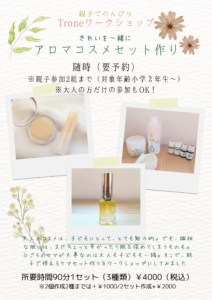 ※子どもから大人まで、肌質も様々です。大きなトラブルがない肌質の方向けのワークショップです